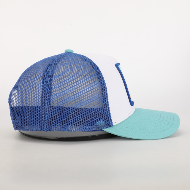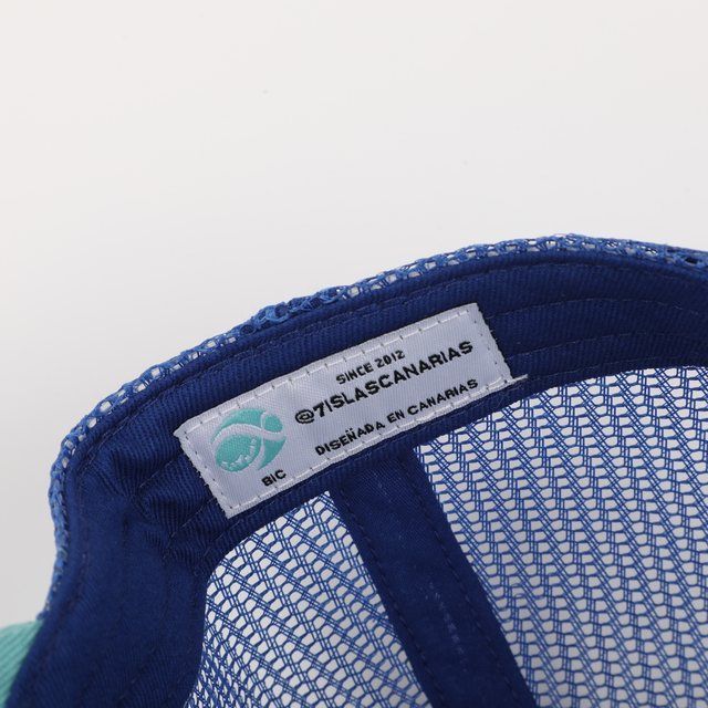 Gorra edición especial CANARIAS EN TU CABEZA. El parche simboliza la playa de La Francesa, en la isla de La Graciosa. Unisex, estilo trucker con parche bordado. Composición - Frontal y Visera: 100% algodón. Malla: 100% Polyester. Parche lateral: 100% Silicona. Talla única: 58 cm de circunferencia, ajustable con cierre trasero.