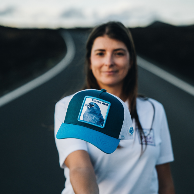 Pertenece a la colección "Símbolos animales de las Islas Canarias". Esta gorra contiene el símbolo animal de la isla de Tenerife, el pinzón azul. Es una especie de ave paseriforme de la familia de los fringílidos (Fringillidae). Es un endemismo exclusivo de esta isla.