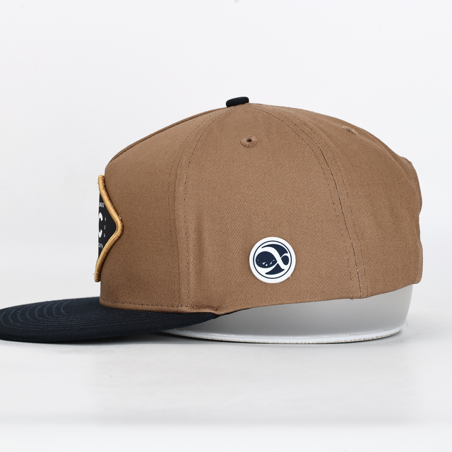 Unisex, estilo visera plana con parche bordado en el frontal y parche de silicona en un lateral.