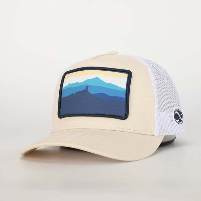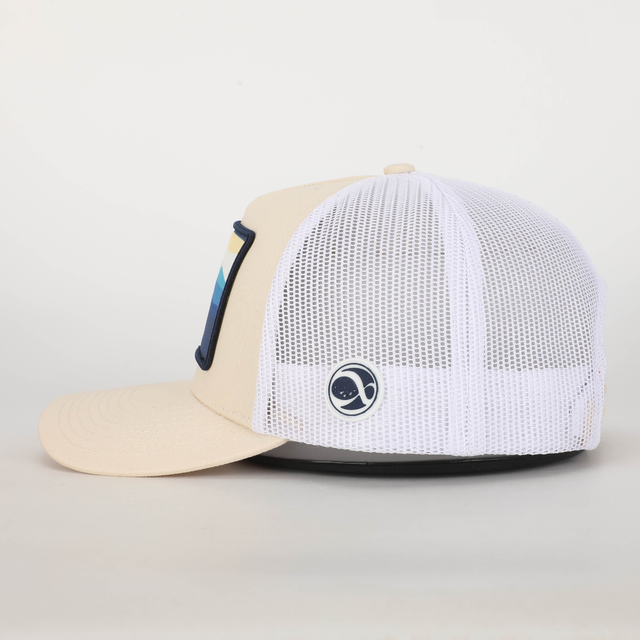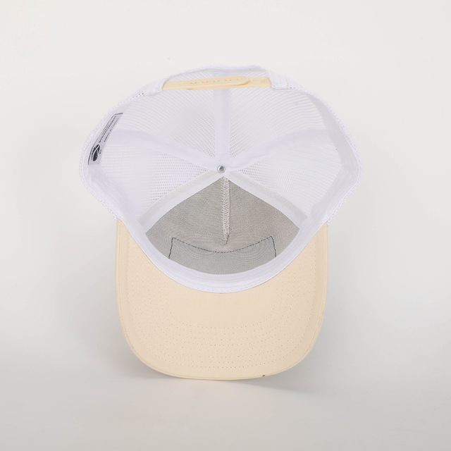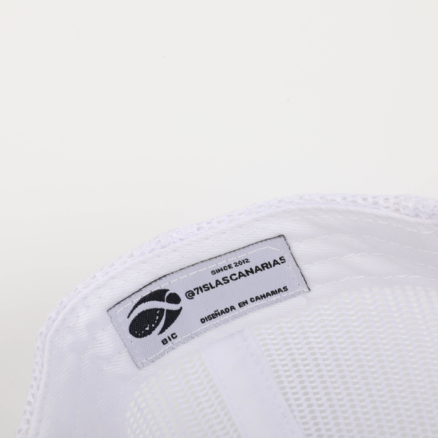 Gorra 8 Islas Canarias silueta beige. Unisex, estilo trucker con parche bordado. Composición - Frontal y Visera: 100% algodón. Malla: 100% Polyester. Parche lateral: 100% Silicona. Talla única: 58 cm de circunferencia, ajustable con cierre trasero.
