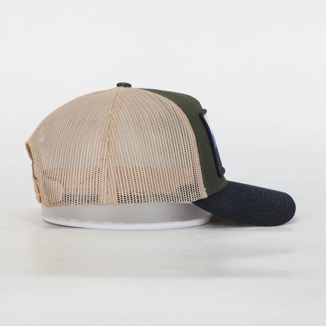 Gorra Silueta. Unisex, estilo trucker con parche bordado. Composición - Frontal y Visera: 100% algodón. Malla: 100% Polyester. Parche lateral: 100% Silicona. Talla única: 58 cm de circunferencia, ajustable con cierre trasero.